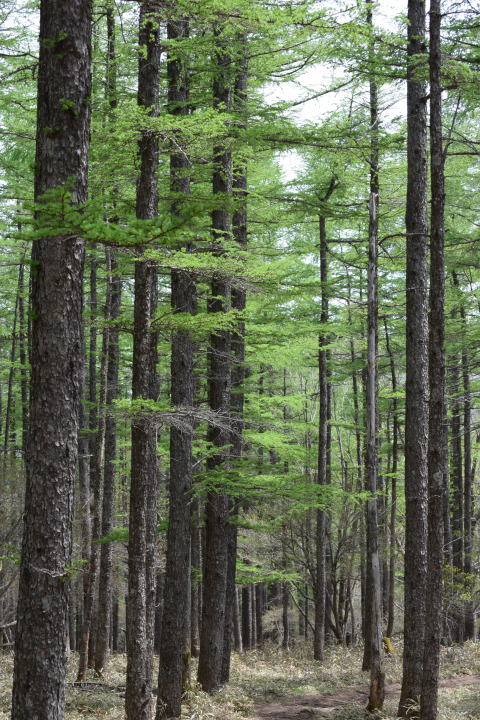 眩しいばかりのカラマツの新緑