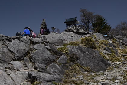 友人の紹介で栃木県矢板市西部に位置する高原山(釈迦ガ岳)に向かう。日光から矢板に向かう途中左前方に雄大な裾野を広げる釈迦ガ岳が望める。この山はアカヤシオ、シロヤシオ、レンゲツツジ、等でも知られている。大間々台登山口は駐車場にトイレもあり整備されている.。途中登山口を変更したことにより到着が遅れ車を留めるのに苦労してしまった。明るく傾斜の緩い登山道を進む。廻りが開けて来ると八海山神社である。アカヤシオはまだ開花したばかりである。アップダウンを繰り返しながら進み北側から急登を登りあげると釈迦ガ岳山頂である。山頂からの展望は素晴らしく南西側には、女峰山、男体山、日光白根山そして西側には会津駒ヶ岳や雪を被った新潟の山々更に北側には那須連峰が望めた。山頂には珍しく釈迦如来像が鎮座していた。山頂で展望を楽しみながら昼食を取った後下山の途に着いた。一週間程遅ければアカヤシオが満開であったかも知れない。