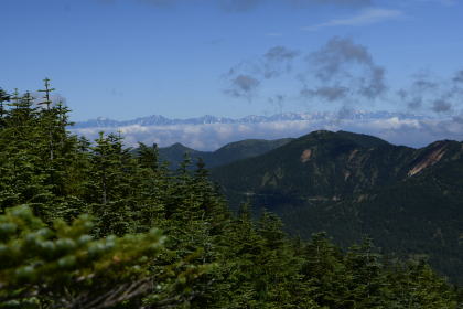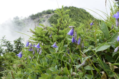 黒斑山は何度か登っているがJバンドを一周するのは初めてである。トーミの頭から草すべりを下り湯の平に出て北上し鋸岳に登り上げ仙人岳から蛇骨岳を通過し黒斑山に戻るコースである。浅間山と黒斑山などの外輪山の鞍部(湯の平)を歩き、鋸岳、仙人岳、蛇骨岳の稜線から浅間山も眺めながら歩くのは何とも快適である。また、草すべりのお花畑も楽しめた。所要時間は7時間半程であった。単独行のガイドの様な方と出会い一緒に歩くことが出来楽しい山旅となった。