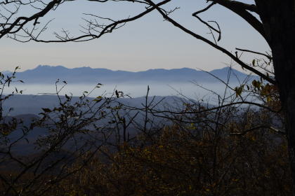14年ぶりの紅葉の鼻曲山である。、紅葉が素晴らしかったことを今でも鮮明に覚えている。霧積温泉登山口から登り始める。期待通りの紅葉が迎えくれた。赤や黄色、見事な紅葉の登山道が続く。標高1000mから1200m付近が見事である。この山は杉や檜などの常緑樹がなく明るく気持ちよい登山道が山頂まで続く。山頂より目の前に浅間隠山や角落山、そして遥か遠方には雪を被った白馬岳、五竜岳、鹿島槍ヶ岳、等の後立山連峰の山並みが望めた。天気と紅葉に恵まれ最高の山旅となった。