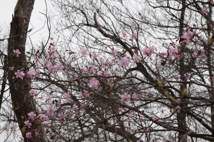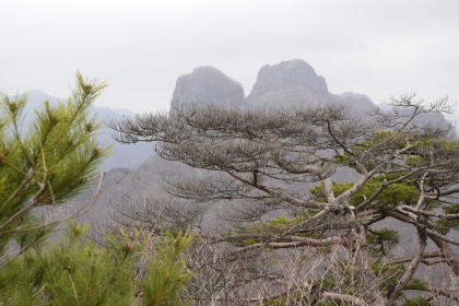 時期が少し早いと思ったがアカヤシオを期待して10年ぶりに西上州の鹿岳と四ツ又山に登る。登山口より杉林の急登が鹿岳の一ノ岳と二ノ岳の分岐まで続く。一ノ岳への道を右に分け二ノ岳に進む。二ノ岳の岩峰が迫る。10m程の木製の梯子を登り更にクサリの急登を登り上げると二ノ岳山頂である。薄曇りで遠望はきかないが荒船山等の西上州の山々が望めた。休憩をしながら軽食をとった後、一ノ岳に登る。山頂より二ノ岳岩峰を振り返る。山頂で展望を楽しんだ後、岩場の登山道を下る。この辺りになると期待のアカヤシオが咲いている。時期が早いので咲き始めのようである。マメガタ峠の鞍部より再度を急登を登り上げ四ツ又山に登る。ラクダのコブのようは鹿岳を振り返る。山頂で休憩をとった後、下山の途に着く。変化に富んだ山旅となった。