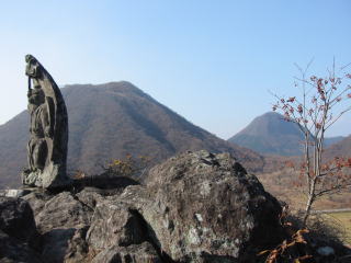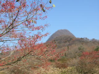 今日は4年程前に鳴神山を登って以来のA氏夫妻との山行である。10時15分、松ノ沢峠登山口より歩き始めた。木製の階段を登り詰め、少し行くと巨岩のスルス岩が目の前に現れた。左側を巻き、紅葉の木立の中をゆっくりと歩いた。落ち葉を踏みしめながら歩くのは、とても気持ちが良い。空気も澄み、気温も暑くなく寒くない丁度良い温度であった。紅葉に染まった相馬山も目の前に聳えていた。暫く登ると、鳥居のあるヤセオネ分岐に出た。ここからが急登であった。途中長い階段が2本あった。しかし、足場がしっかりしているので歩き易かった。歩き始めて1時間40分程で山頂に着いた。山頂には真っ赤な実を付けたマユミの木が数本あった。