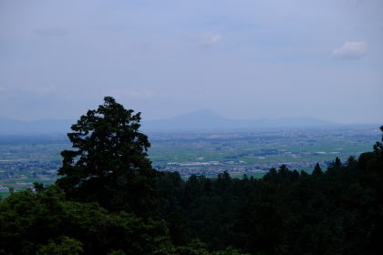 神社の境内より筑波山を遠望