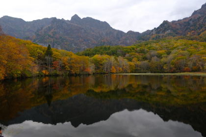 今日は戸隠中社でお参りをした後、昼食で蕎麦を食べる予定であったが、中社周辺の蕎麦店はどこも観光客で満員であった。やっと目的の蕎麦店に辿り着き新蕎麦をいただくことが出来た。味も接客も素晴らしかった。その後、念願の紅葉の戸隠高原の鏡池に向かう。駐車場の混みが激しく徒歩で鏡池に向かい40分程掛かった。紅葉は今が最盛期で写真撮影に絶好であった。池周辺の紅葉と特徴ある戸隠山が湖面に映り込み絶好のロケーションであった。
