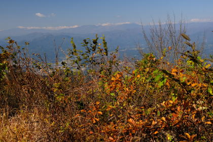 十二ヶ岳は冬場に登ったことはあるが紅葉の時期に登るのは初めてである。今日は天気にも恵まれ絶好の登山日よりである。結婚の森登山口より歩き始める。林道を10分程歩き登山道に入る。傾斜の緩い針葉樹の森が続く。標高1000m位から紅葉した木々が増えて来る。最初の展望は見透し岩であり榛名の山々が望める。ここを過ぎると傾斜はきつくなるが木々の紅葉も鮮やかになる。30分程、急登を登り上げると十二ヶ岳山頂である。山頂は360度の大展望で南に榛名山、北東に皇海山、日光白根山、上州武尊山、西に浅間山、四阿山、草津白根山、横手山が望めた。残念ながら北側の谷川岳は雲の中であった。山頂で充分展望を楽しんだ後、下山の途に着いた。