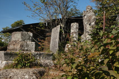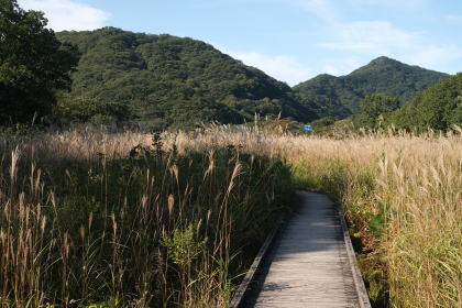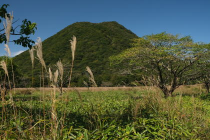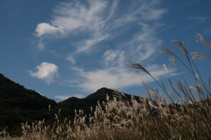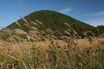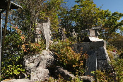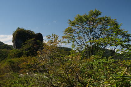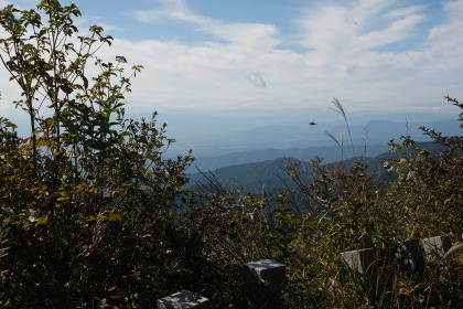 一作年のこの時期以来の相馬山である。あの時は忘れもしないアサギマダラに遭遇した日である。今年はどうかとユウスゲの道を進む。木道の脇はススキで一杯そしてその背後は榛名富士が聳える。所々に紫色のマツムシソウが咲いている。紅葉にはまだ早いが空気は澄んでいて秋の気配である。スルス岩を左に分け登山道に入る。暫く長い階段が続く。鳥居を潜ると岩場の急登である。途中梯子が3カ所程ある。山頂近くの鳥居を潜るとあっと言う間に山頂である。山頂には社務所がある。山頂から北側は木々で囲まれ展望はあまり良くないが東側は開け関東平野が望める。山頂で少し休憩をとり下山の途に着く。下山後、ユウスゲの道や榛名湖周辺で写真撮影を楽しむ。残念ながらアサギマダラに会うことは出来なかった。