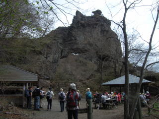 妙義山、桜の里は県下の中でも有数な桜の名所である。岩峰鋭い妙義山を背景に桜が映える。安中、磯部温泉を過ぎ松井田に入ると白雲山、金洞山、金鶏山と特徴ある表妙義の山容が目に入ってくる。今の時期桜の里はソメイヨシノで満開になる。岩峰に囲まれた新緑の中、ブドウ小屋脇の登山道から中間道の下を一本杉に向かって歩き、その後第一石門から第二石門のクサリを登り第四石門まで歩いた。第四石門の下で偶然にもS氏夫妻とばったり会った。久しぶりで会ったので10分程立ち話をしてしまった。昨年は中国地方の大山を登ったとのことであった。そう言えば今年の年賀状が大山を背景にしたものであったことを思い出した。第四石門の下で休憩をとった後下山し,先に桜の里を散策していた女性群と合流し、A氏夫妻、M氏夫妻と久し振りに楽しい一時を過ごした。妙義山麓はソメイヨシノや大島桜等が今が盛りと咲いていて、背景の妙義山と重なり何とも見事であった。5月の連休には八重桜が満開になる。