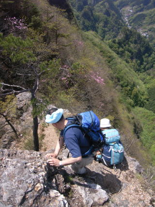 碧岩、大岩は新緑の登山道、ロープで登る岩場、山頂のアカヤシオと展望等、変化に富んだ山である。西上州の山の中では一番危険度の高い山かも知れないが登ると満足できる山である。碧岩へのロープはなんとも心もとない。せめて鎖であれば、もう少し安心感がある。往復5時間程で歩ける。西上州には立岩、鹿岳、毛無岩等、変化のある山が多い。この時期どの山も素晴らしい展望とアカヤシオが楽しめる。今回久し振りにR氏と一緒に登ったが、いつも元気で驚くばかりだ。