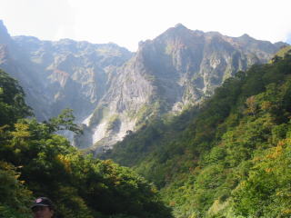 会社のイベントで谷川岳の沢筋(国道291号線、旧道)を歩いて来た。黒沢、マチガ沢、一ノ倉沢の沢筋の紅葉はまだまだであったが、谷川岳、一ノ倉岳上部岸壁の紅葉は真っ盛りであった。何度かこの沢筋を歩いたことはあるが、岩壁の全景がこんな素晴らしく見えたのは初めてある。背後には白毛門、笠ガ岳の雄姿もはっきり望めた。秋の澄んだ空気の中、紅葉した岩壁を仰ぎながらのんびりとした沢巡りが楽しめた。沢筋のブナが黄葉に染まるのはまだ2週間程掛るかも知れない。