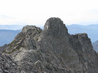 ジャンダルムより西穂高岳(北側は垂直な岩壁)を望む