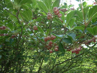今回は一つ気になっていることがあった。国立青年の家周辺の松枯れの進行状態である。年々松枯れが進んでいるようである。案の定、青年の家周辺の松の木は殆どが涸れている。多くの涸れた松の木はすでに伐採されているが、一部は伐採去れずに立ち枯れのまま残っている。見るに堪えない程無残である。青年の家の下の方は伐採された跡地の再開発が進められていた。復旧させるのも大変な事業である。コナラ等の木を植えるのだと言う。松枯れの原因は「松くい虫」とも「酸性霧」とも言われている。私自身は「酸性霧」が原因だと思っているが、「松くい虫」説が有力の様である。話は変わるが今回は赤城の荒山と鍋割山を散策した。森林公園から歩き始めるとツツジではなく、「雨降らしゼミ」が出迎えてくれた。今の時期、ビー、ビーと、大変うるさい感じだ。ツツジの最盛期であれば20分程するとヤマツツジのトンネルであるが、すでに最盛期は過ぎてしまっていた。芝の広場付近まで来ると名残のヤマツツジが咲いていた。芝の広場を直進し小沼方面に向う、更に軽沢峠手前を左に折れ荒山に向かった。途中「ひさし岩」からの眺望が素晴らしい。地蔵岳、黒檜山、長七郎山が望めた。ここからはベニサラサドウダンツツジの木が多い。ピークは少し過ぎた感じがするがまだまだ見ごたえがあった。荒山山頂からはガスが掛っていて遠望はできなかった。休憩をとった後、ガスの掛った鍋割山を見ながら荒山高原に下った。荒山高原は中高年登山者や幼稚園ハイカー達で賑わっていた。この後、鍋割山に向かった。鍋割山の稜線に咲くツツジも殆ど涸れていた。でも気持ちの良い稜線散歩が楽しめた。