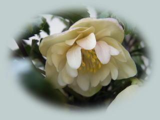 白のダブル咲です。暮れに蕾を付けてようやく開花しました。