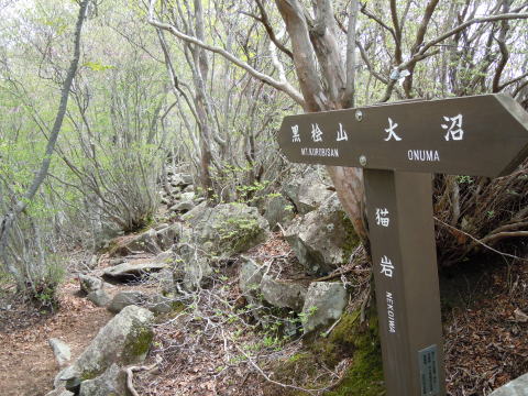 梅雨の晴れ間、久しぶりに赤城黒檜山に登る。やはり赤城はツツジの宝庫である。大沼の東側にある標高1380mに位置する登山口より登り始める。黒檜にはこの登山口から登るのが常であるが、標高差450mある山頂の黒檜山(1828m)までどの位の時間で登れるかが体調のバロメータである。いきなりの急登であるがピンクが鮮やかなミツバツツジが迎えてくれた。猫岩辺りから蕾の木が多くなる。この山に登るのには今が最適な時期かも知れない。ツツジが素晴らしいだけでなく新緑で葉が多く茂っていないため登山道が明るく快適である。暫く急登を登り右側の眺望が良くなると猫岩である。大沼や地蔵岳、長七郎等の展望が開ける。この辺りには白いムシカリの花が多い。ヤマツツジやシロヤシオには少し早いようである。稜線に出て左に行くと黒檜山山頂である。今日は平日であるが10人程の人が昼食を取っていた。山頂から北東側には皇海山や袈裟丸山の山並が望めた。山頂で休まず、山頂から100m程奥の展望の開けた場所に行き、昼食にした。ここからは北側と西側の展望が素晴らしい。残雪を被った谷川岳、上州武尊岳、至仏山、男体山等の山々が遠望できた。1時間程、昼食を取りながら眺望を楽しんだ。下山は駒カ岳経由で歩いたが、「熊出没」の表示が多く、単独での山行だったので登山口に着くまでこの表示が気になった。下山後、シロヤシオの開花状態を確認するため小沼まで足をのばした。まだ蕾も出ていないので満開になるのは10日位先かなと思いながら帰路に着いた。
