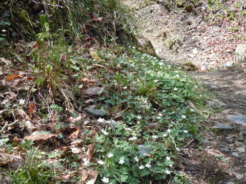今の時期この山に毎年のように登っているが、猪子トンネル登山口から登るのは2回目である。稜線に出てから山頂までアップダウンを繰返しながら登りこう配で雰囲気が違うように思える。例年であれば4月初旬がアカヤシオの最盛期であるが今年は春の訪れが少し遅いようである。想像通り満開のアカヤシオが迎えてくれた。天気も良く登山者の数もいつもより多い気がした。南側には深高山の山並、北側には男体山が望めた。登り始めて2時間程すると山火事の跡が痛々しい場所に着く、展望の良いこの場所で昼食をとる。眼下には桜に囲まれた松田ダムが望めた。今が盛りのアカヤシオを楽しみながら一歩一歩足を進めた。賑やかな山頂で少し休憩をとった後下山の途に着いた。岩切登山口に下るに従い沢沿いに咲くニリンソウが目を楽しませてくれた。そして新緑が鮮やかになるのを感じた。気持ち良い春の一日であった。