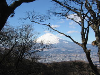知人に誘われ、初めてツアー登山に参加した。参加者20人で雪の富士山を眺めるため、小型バスで展望が素晴らしいと聞く金時山(標高1,213m)に向かった。伊勢崎駅前を5時に出発、太田、館林を経由、東北自動車道、館林ICから、東京方面に向かい、首都高速に乗り換え東名御殿場ICで降りた。途中、富士山の眺望が素晴らしい。10時30分、金時山登山口に着いた。途中、何度かSAに停まったが所要時間は5時間30分、走行距離250キロであった。身支度を整え歩き始めた。空気も澄んでいて、暖かく、絶好の登山日よりであった。最初は桧林の中を歩く、登山道は雪もなく、乾いていて歩き易い。30分程で乙女峠に着いた。乙女峠から見る富士山の眺望は誠に素晴らしい。まさに、富士山の展望台であった。反対側を見ると芦ノ湖や仙石原が眼下に見えた。思っていたより、富士山の姿が大きく見えた。何とも言えない素晴らしい景色であった。