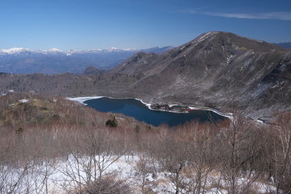 体調も回復状況にあり天気も絶好なので赤城に向かう。途中氷結もなく無事地蔵岳登山口に着く。階段を登るにつれ積雪が増してくる。アイゼンが必要なほどではない。30分程で山頂に着く。北から西にかけての展望は最高である。谷川岳、上州武尊山、燧ヶ岳、至仏山、等の上信越国境の残雪の山々が眼前に迫った。この上ない展望である。眼下には赤城大沼も望める。大沼の氷結は八割程溶けていて春がそこまで来ている感じである。展望を楽しみながら写真撮影をし下山の途に着いた。